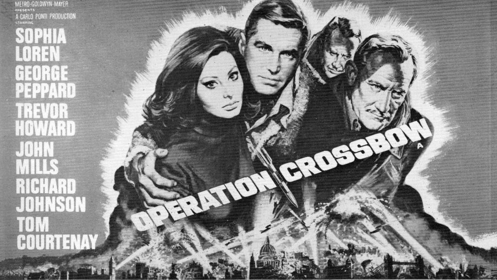 A clever mixture of detail and derring-do, World War Two picture Operation Crossbow (1965) – based on the true story of Allied infiltration of a German rocket factory – was a surprising hit at the British box office. The picture took a risk in keeping star George Peppard hidden from view for the first 28 minutes (top-billed Sophia Loren took nearly another 20 minutes to show up). Prior to their appearances the opening sequences were loaded up with a roll-call of British stars familiar with the genre in the vein of John Mills (Ice Cold in Alex, 1958), Trevor Howard (Cockleshell Heroes, 1955) and Richard Todd (The Dam Busters, 1955). Anthony Quayle, who puts in a later appearance, was also a war movie veteran after turns in Battle of the River Plate (1956), Ice Cold in Alex and The Guns of Navarone (1961).