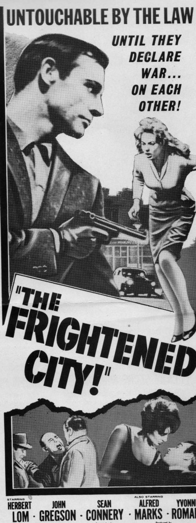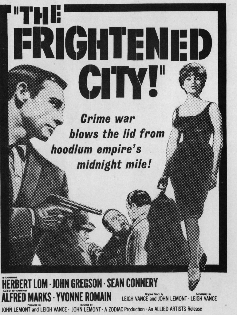 Top billing was a step up for Lom and he made the most of it, delivering a suave villain among the thugs. Gregson (The Captain’s Table, 1959) was a solid British star and ideal cop material (he was later British television’s Gideon). Yvonne Romaine, as Connery’s new squeeze, a nightclub singer exploited by Lom more for her looks than her voice, was known to audiences after Curse of the Werewolf (1961). In only her second film Scottish television actress Olive McFarland was Connery’s dumped girlfriend. Unusually, for a British picture at this time, the theme tune written by Norrie Paramour was covered by The Shadows and turned into a hit.