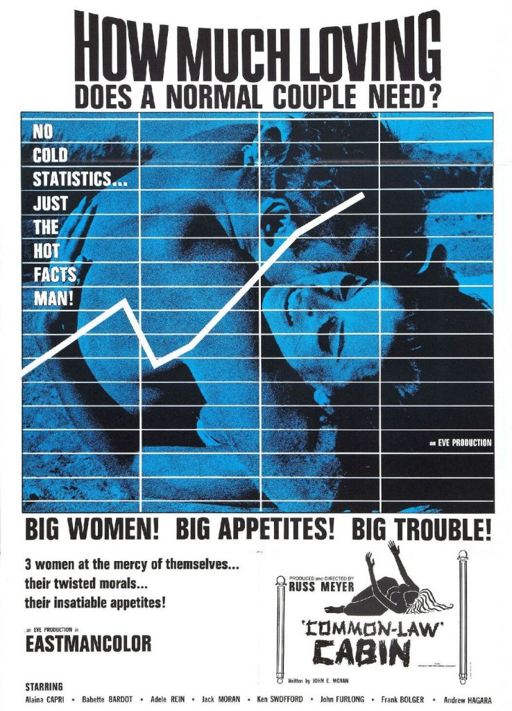 That resulted in a greater breadth of films being reported. Except on first run arthouses, where some art films with greater sexual content could be shown, it was rare for a sexploitation picture to feature in a big city first run. Russ Meyer was the acceptable face of sexploitation, especially since his films contained humor. Even so, eyebrows were raised when the exploits of Common Law Cabin (1967) made headlines in Variety (“Sexploitation pair: $22,000 at Fox”) at Detroit’s biggest cinema, the 5,100-seater Fox, a major first run venue. That film found slots in first run in Chicago at the Center and the Fine Arts in Portland. Another Meyer opus Finders Keepers found a berth at the Randolph in Philadelphia (“Russ Meyer’s Nude Pic Into Philly’s Classy First Run”). But that was the extent of its invasion of first run for that year. And that was pretty much how the industry expected things to stay, a rare sexploitation making a few headlines, but not much more.