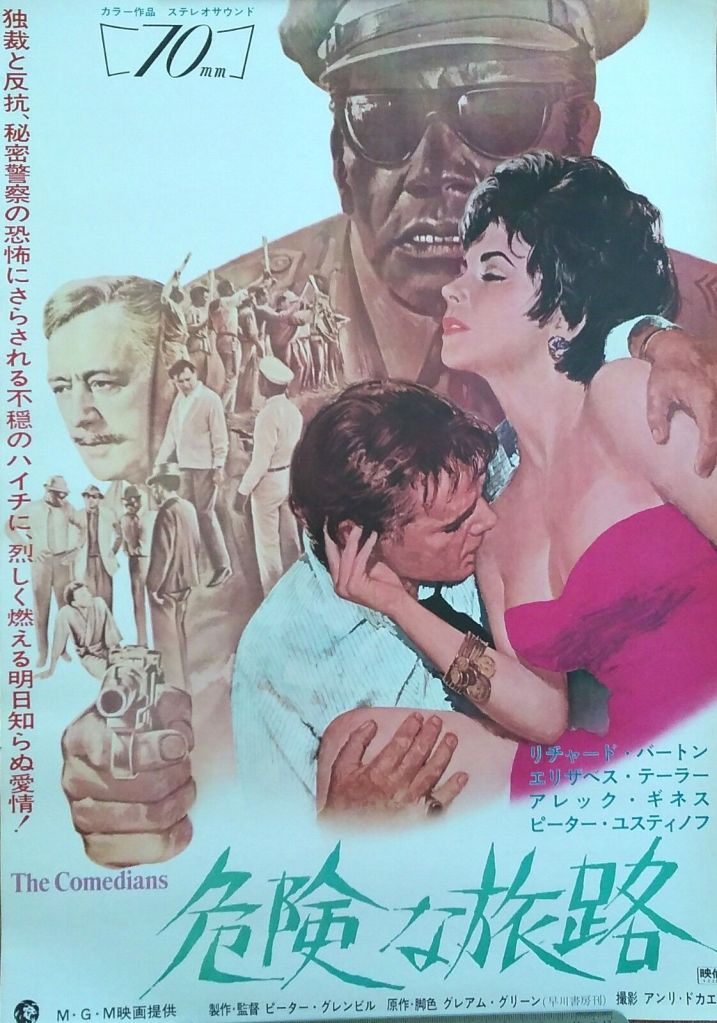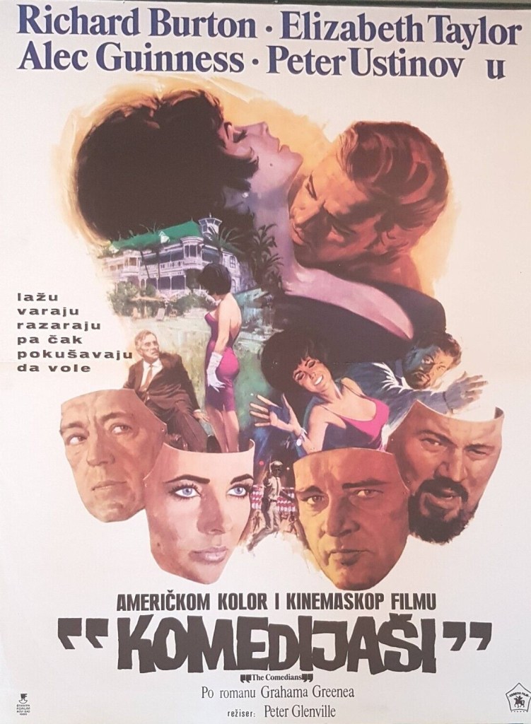 SOURCES: Chris Williams (editor), The Richard Burton Diaries (Yale University Press, 2012) p130-131, 152-157; Melvyn Bragg, Rich, The Life of Richard Burton (Hodder and Stoughton, 1988) p223, 231-232, 236-237; Sam Kashner and Nancy Schoenberger, Furious Love, Elizabeth Taylor, Richard Burton, The Marriage of the Century (JR Books paperback, 2011) p196-204; William J. Mann, How to Be a Movie Star, Elizabeth Taylor in Hollywood (Faber and Faber, 2009) p378-379; Alec Guinness, Blessings in Disguise (Hamish Hamilton, 1985) p209-210; Leopold Duran, Graham Greene, Friend and Brother (Harper Collins, 1994) p153, 238, 258; “Burton-Guinness Teamed,” Kine Weekly, September 8, 1966, p4; “Burton-Guinness Teamed,” Box Office, September 16, 1966, p4; “George Glass Protests Metro’s Comedians Treads on his Teleplay,” Variety, October 26, 1966, p5; “Elizabeth Taylor to Co-Star in Comedians for MGM,” Box Office, October 10, 1966, p7; “Comedians Looms as Metro Roadshow,” Variety, April 12, 1967, p26; “Plan Comedians Premiere,” Box Office, September 11, 1967, pE3; “Urge Films Shun Shock’n’Violence for Own Sake,” Variety, October 25, 1967, p1; “Museum to Devote Entire Exhibit to Comedians,” Box Office, October 30, 1967, pE7; “Haiti Protests Showing of Comedians,” Box Office, November 6, 1967, pE4; “Comedians on Roadshow at London Coliseum,” Variety, January 3, 1967, p5; “Year-End Best Picks,” Variety, January 10, 1968, p8.
