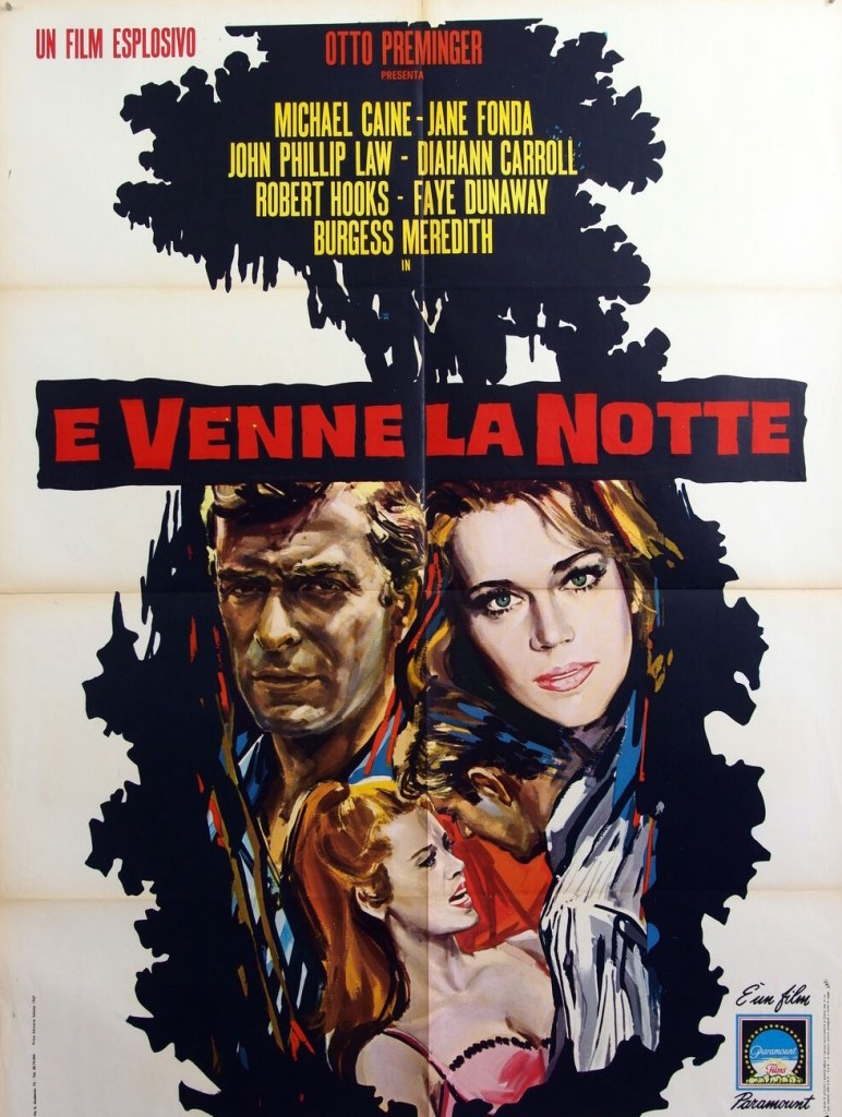 The husband-and-wife principals were initially cast as Michael Caine – enjoying a golden period at the U.S. box office as explained in a previous article When Caine Was King – and Candice Bergen (Soldier Blue, 1967). When the latter dropped out, Jane Fonda (The Chase, 1966) was her replacement. Faye Dunaway was signed to a six-picture deal after Preminger saw her on Broadway in Hogan’s Goat and gave her a screen test. He also signed up, to a three-picture deal, John Philip Law (The Russians Are Coming, The Russians Are Coming, 1966). After Sidney Poitier turned down the role of Reeve, he was replaced by Robert Hooks. The rest of the casting was relatively plain sailing, Burgess Meredith as a bigot, Diahann Carroll as a teacher.