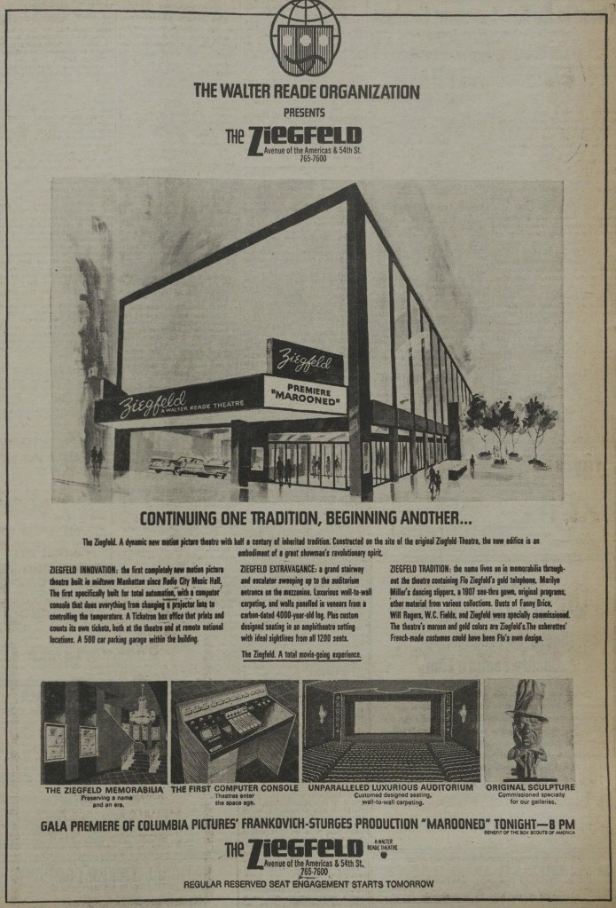 You get the impression from this ad in “Variety” on December 17, 1969, that “Marooned” was somewhat incidental to the opening of the first new theater on Broadway in three decades.