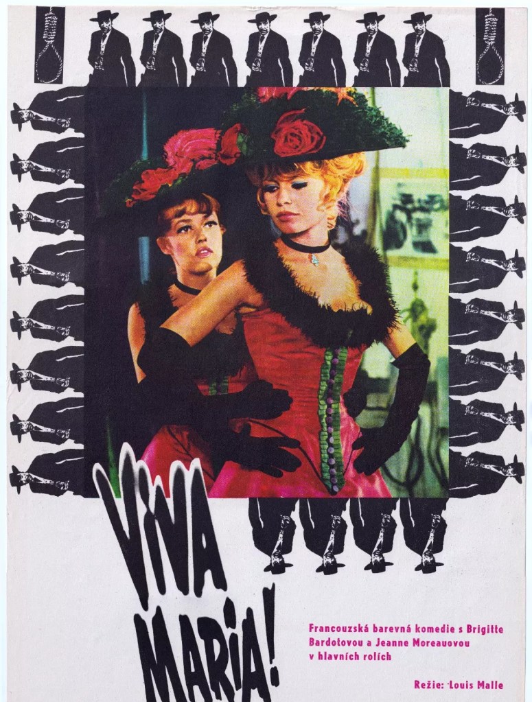The shooting of Le Feu Follet in 1963 had proved so depressing for director Louis Malle that halfway through the filming, alone on a Sunday afternoon in his Parisian apartment, he jotted down the two pages that turned into Viva Maria! He had worked with Brigitte Bardot before on A Very Private Affair/ La Vie Privee (1962) but even with her presence it was made in virtual isolation. So he was unprepared for the brouhaha that awaited. The media had created a rivalry between the two stars – Bardot and Jeanne Moreau – which was ironic given it was a film about friendship.