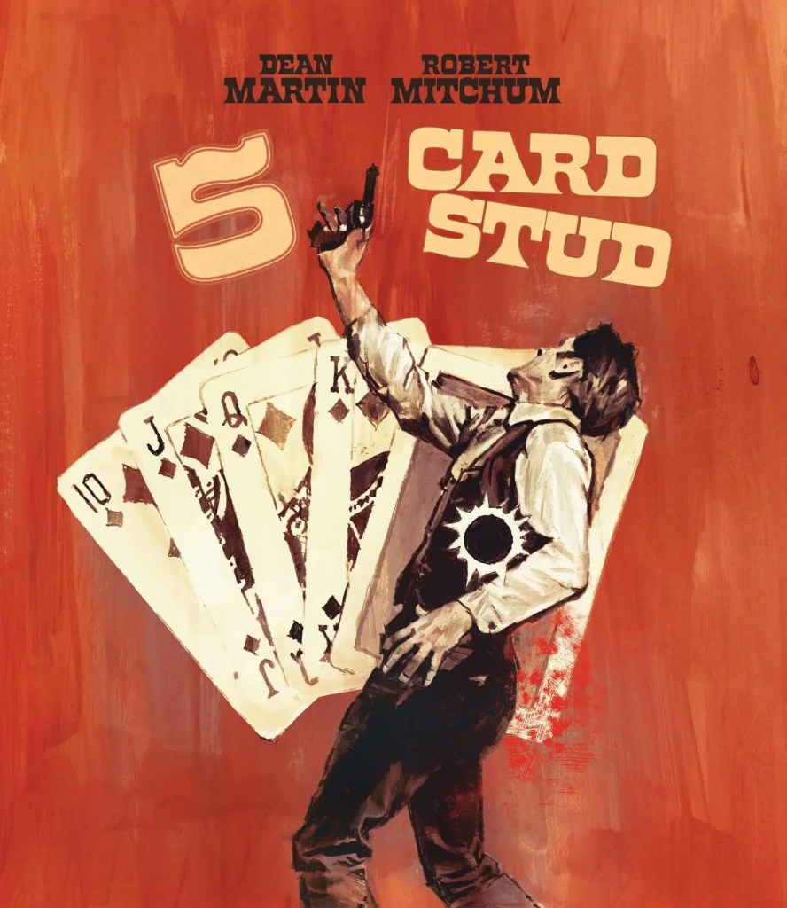 - Five Card Stud (1969). Poker player Dean Martin turns detective as the body count mushrooms in Henry Hathaway western co-starring Robert Mitchum and Inger Stevens.