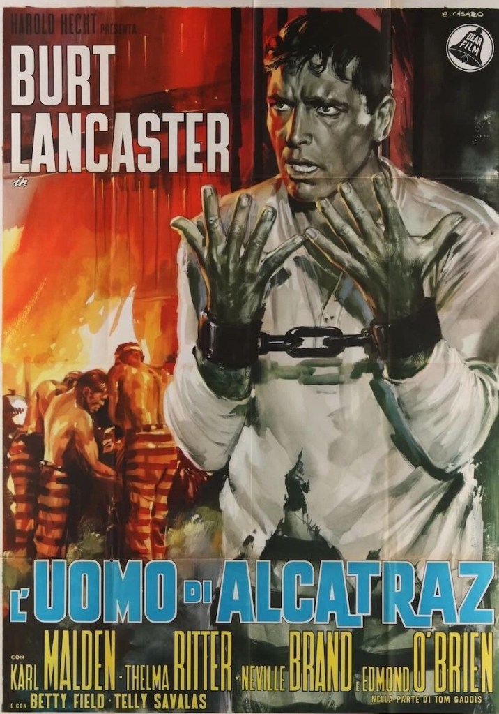 Next up was accomplished independent producer Harold Hecht, who had formed a partnership with Burt Lancaster – Apache (1954), Trapeze (1956), The Unforgiven (1960). He was no more successful with the prisoner authorities – denied permission to shoot in Alcatraz or Leavenworth. But at least with Lancaster on board, he had a marketable commodity. Although he had a close relationship with United Artists, Birdman of Alcatraz was initially set up at Columbia and while shot on that studio’s backlot it was released through UA as a part of a 46-film three-year production package promising to be “as diverse, offbeat and box office” as previous offerings.