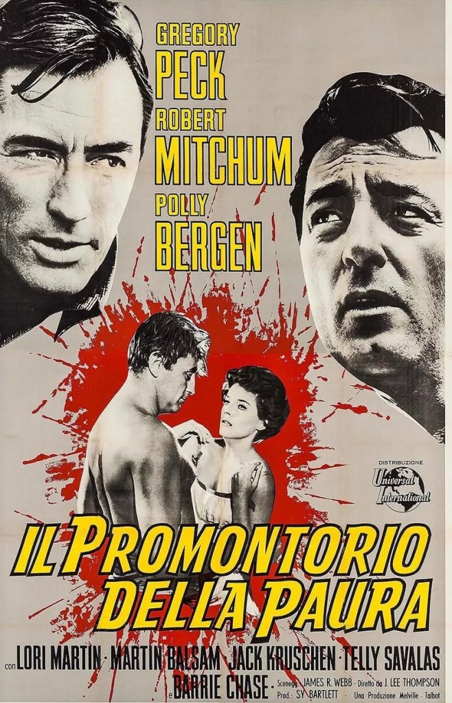 Ernest Borgnine (Go Naked in the World, 1961) was first choice to play psychopathic killer Max Cady. Rod Steiger (The Pawnbroker, 1964), Jack Palance (Once a Thief, 1965) and Telly Savalas (Birdman of Alcatraz, 1962) were also considered. “We actually tested Savalas and he gave a very good test for the part,” explained Thompson. “But these were character actors or at least secondary actors compared to Greg. At some point discussing it together we began to talk about having the villain played by an actor of equal importance, making it a much stronger match-up from the audience’s point of view and (Robert) Mitchum immediately came to mind.”