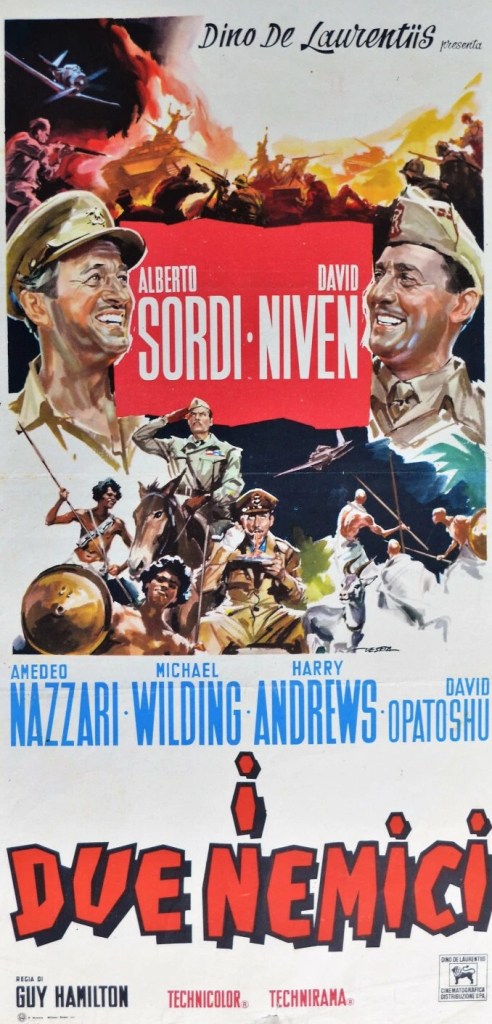 Major Richardson (David Niven), reconnaissance plane shot down in Italian-held Abyssinia (Ethiopia) in 1941 in World War Two, is captured in the desert by a unit led by Captain Blasio (Alberto Sordi). Blasio doesn’t want the responsibility of prisoners and encourages Richardson to escape, hoping that the Brit, taking note of how weak the Italian unit was, would leave them alone.