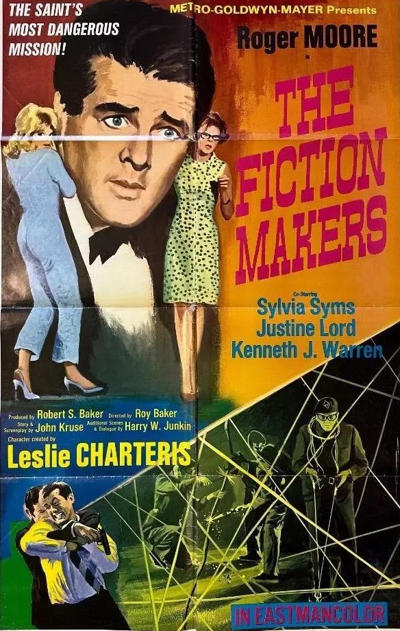 Simon Templar (Roger Moore), aka The Saint, is hired to protect Amos Klein whose publisher believes the author is in danger. It doesn’t help that Klein lives in such anonymity that nobody knows the real name, not even the publisher. Turns out she’s a woman (Sylvia Syms), presumably adopting a male name because she writes such male-oriented books, filled with ingenious ideas.