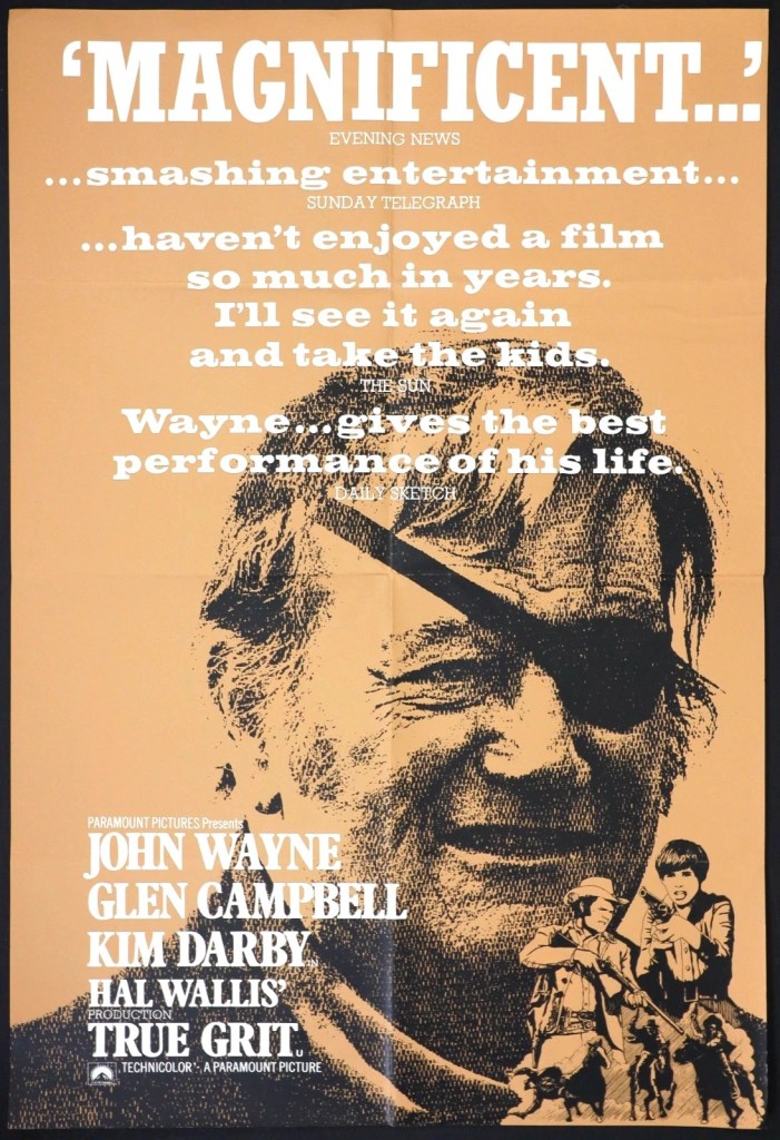 Allen Eyles in Focus on Film summed up the film’s appeal: “That True Grit could end up being the best western of the year is a tribute to old Hollywood – to a producer, director, star, cameraman and others who’ve been at the top of the film business for more than three decades. Their solid, unpretentious professionalism enables them to meet the challenge of filming a first-rate novel with pleasing assurance and directness…it is far superior to…the poorly-shaped but occasionally striking The Wild Bunch from Peckinpah…(it) is not innovatory in style but the details are communicated with a freshness that is appealing.”