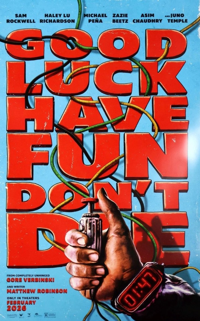 Sam Rockwell (Argylle, 2024) is covered in a beard and all sorts of stuff which conceals all his annoying acting tics, Juno Temple (Roofman, 2025) has the most emotional part and Michael Pena the most baffled and Zazie Beets (Bullet Train, 2022), Haley Lu Richardson (Love at First Sight, 2024) and Asim Chaudry (People Just Do Nothing: Big in Japan, 2021) do well and in his movie debut creepy kid Artie Wilkinson-Hunt is in the top bracket of creepy kids. Written by Matthew Robinson (Love and Monsters, 2020).