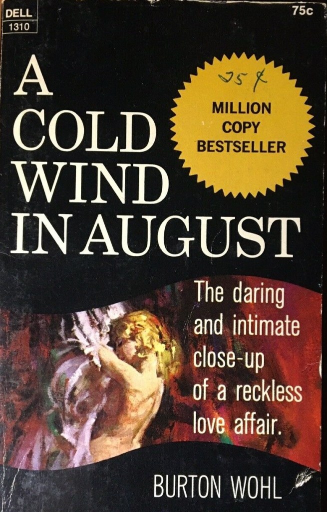 Burton Wohl turned his bestseller into the screenplay – John Hayes not to be confused with John Michael Hayes is credited with the screen treatment – and it’s an object lesson in making the transition. For a start, Wohl had to tone down his racy book. Given that what movies could show on screen was governed by a self-imposed censorship system called the Production Code, I was surprised to discover there was no such automatic limitations laid down on fiction. There had been a boom in paperback originals with sexy covers that might be sold in a local drugstore rather than mainstream book outlet and A Cold Wind in August was a surprise success since most of the books in that line were formula numbers churned out in endless supply.