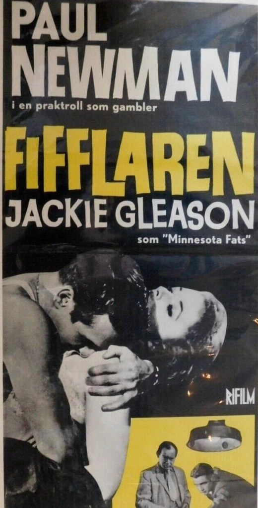 There’s little sign of a pool cue in some of the artwork. Instead, we have Paul Newman lustily nuzzling Piper Laurie’s neck or bosom. The taglines promise something far removed from a sports picture.