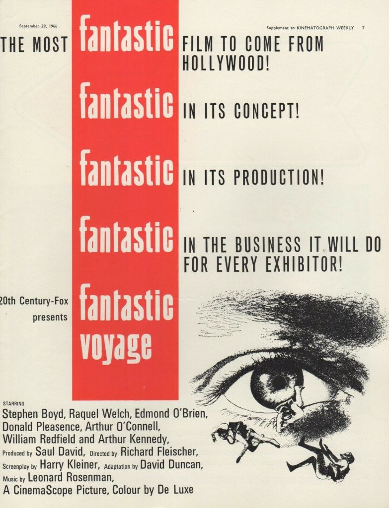 If this had appeared a couple of years later after Stanley Kubrick had popularised the psychedelic in 2001: A Space Odyssey (1968), and with his budget, it might have been a bigger hit. As it is, the ground-breaking sci-fi adventure, going in the opposite direction from Kubrick, exploring the mysteries of the body rather than the universe, is a riveting watch.